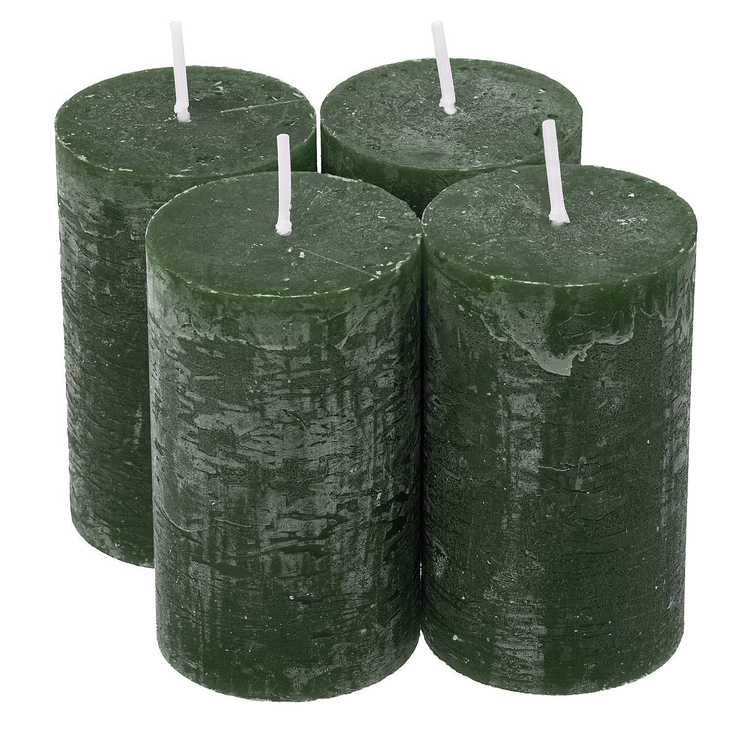 Rustikale Kerzen, tannengrün, 10 x 6 cm, 4 Stück