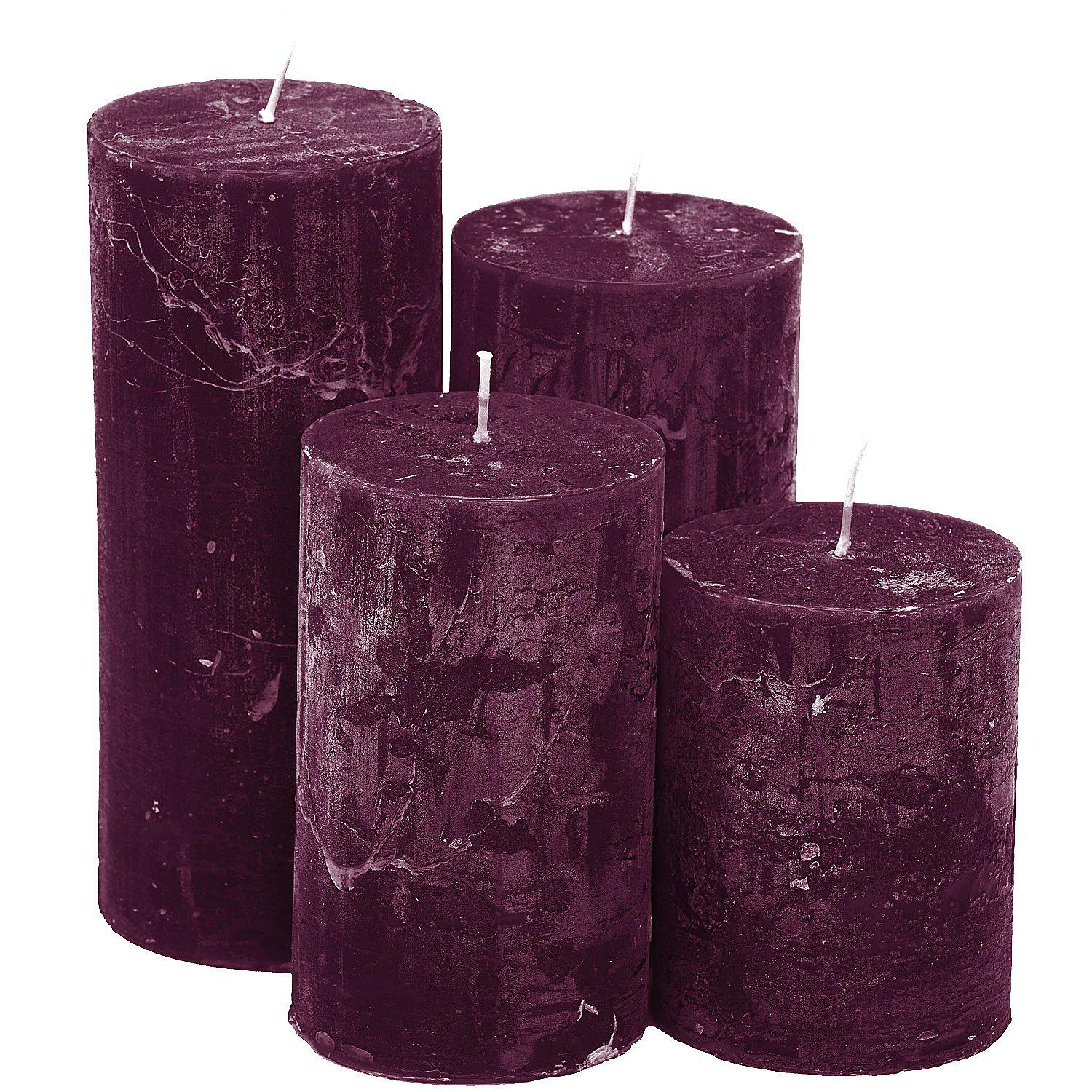 Rustikale Kerzen, weinrot, abgestuft, 4 Stück