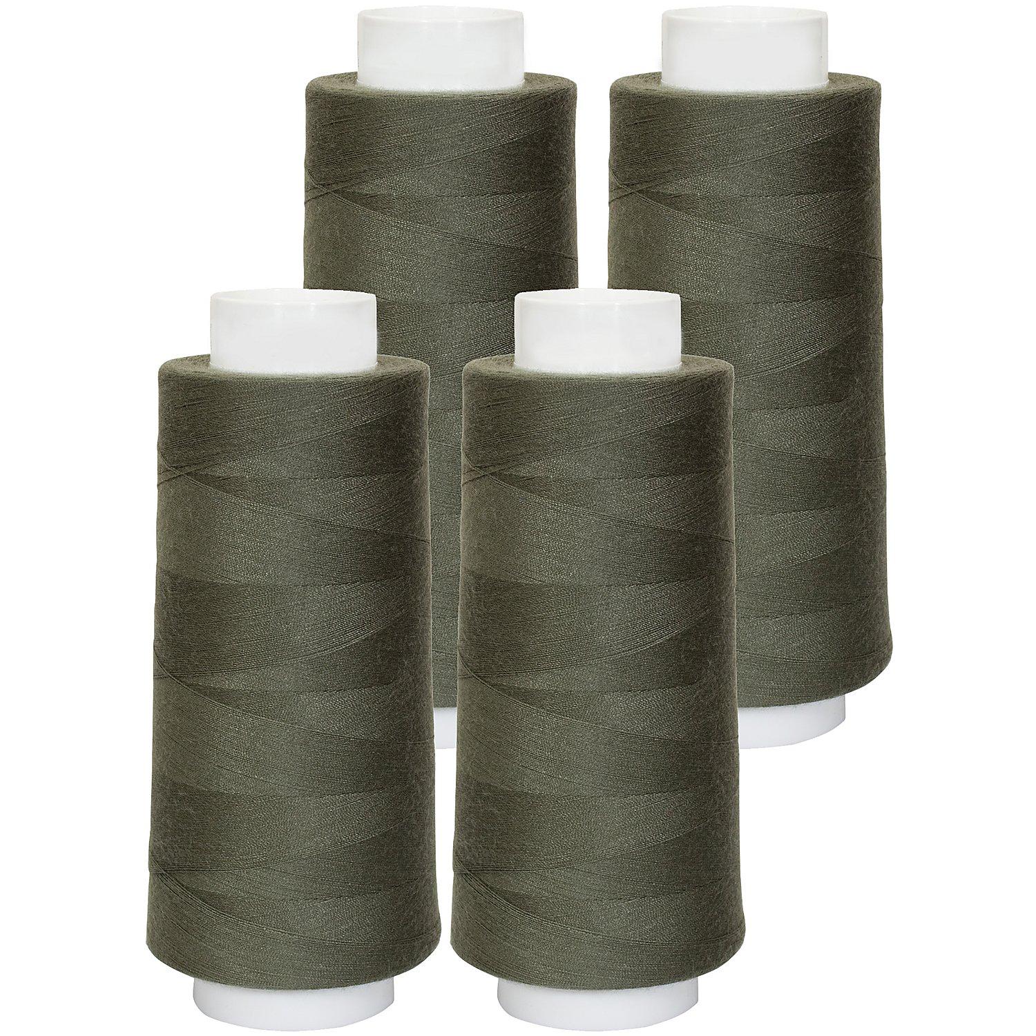 buttinette Overlockgarn im 4er-Pack, Stärke 120, 2500m-Spule, oliv