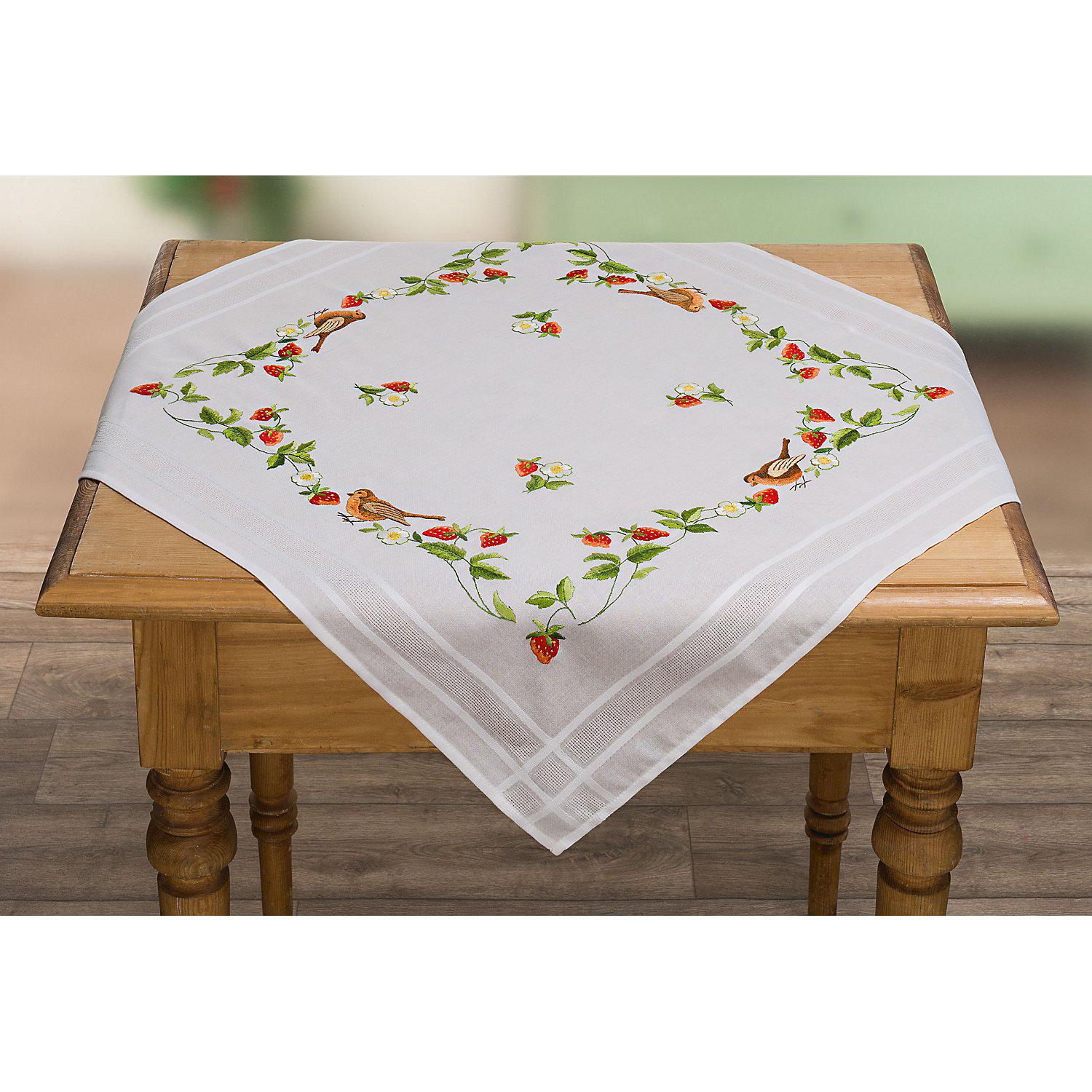Stickmitteldecke "Erdbeeren & Rotkehlchen"