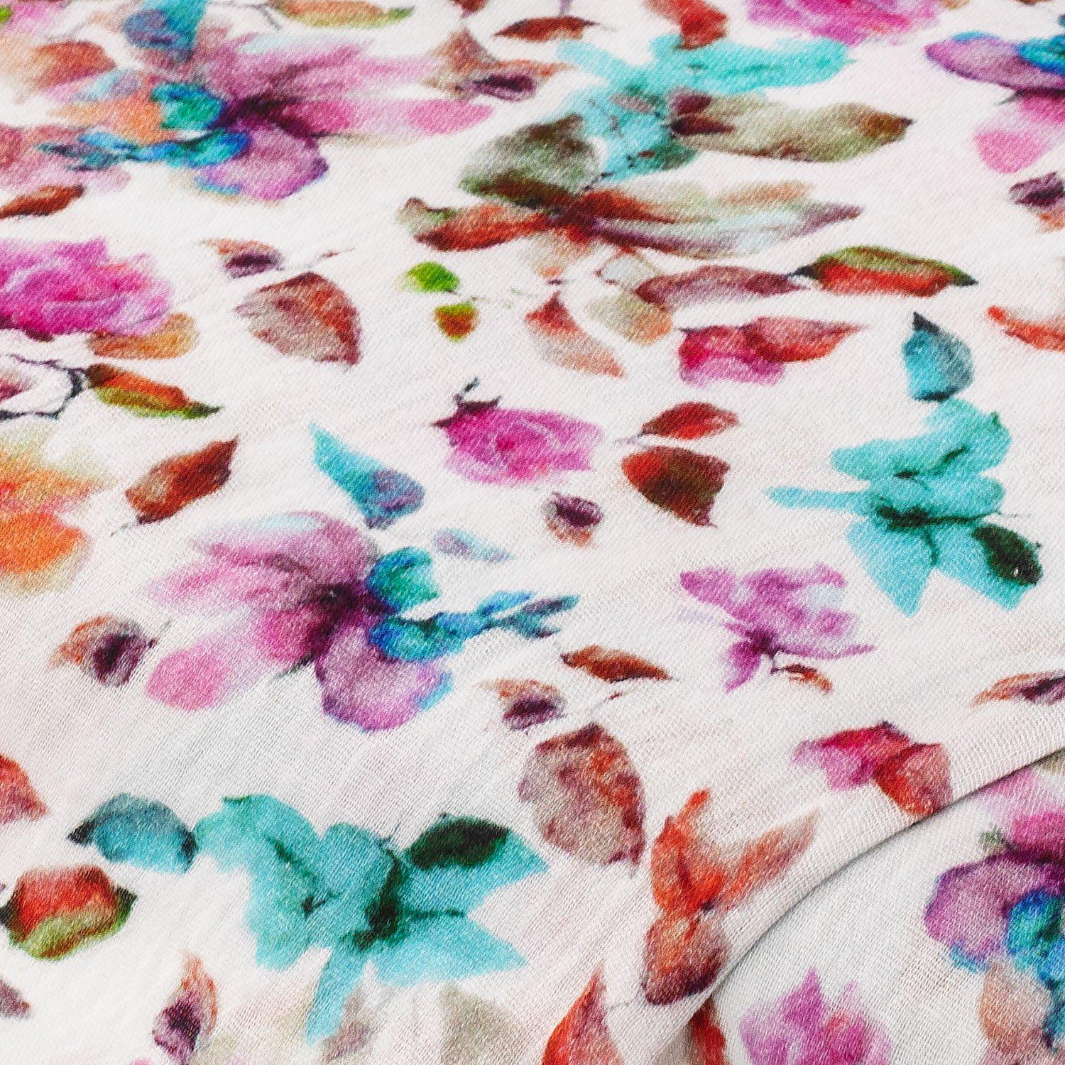 Musselin/Doppel-Gaze Digitaldruck "Blumen", weiß/rosa/türkis