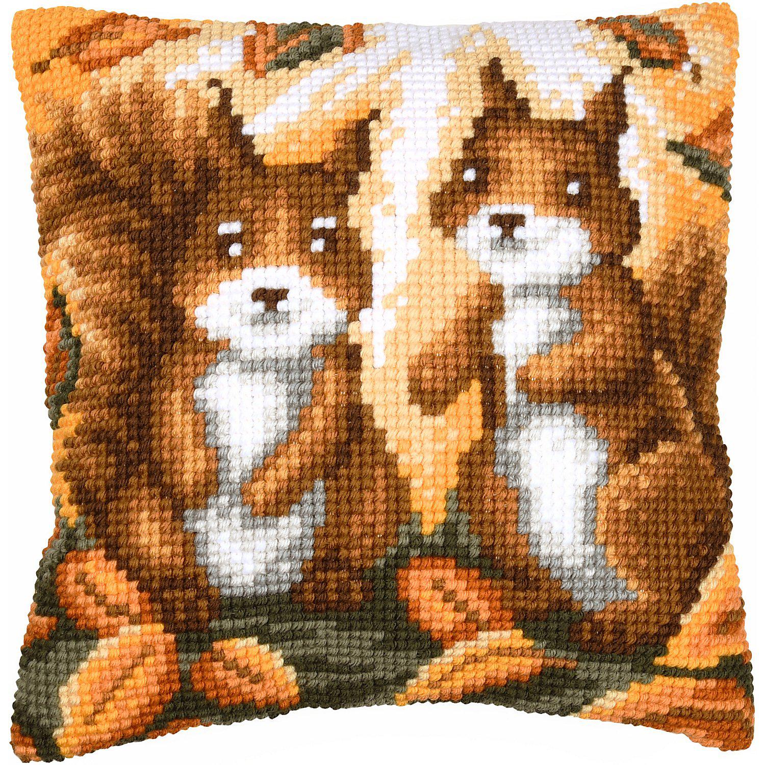 Kreuzstichkissen "2 Eichhörnchen Herbst"