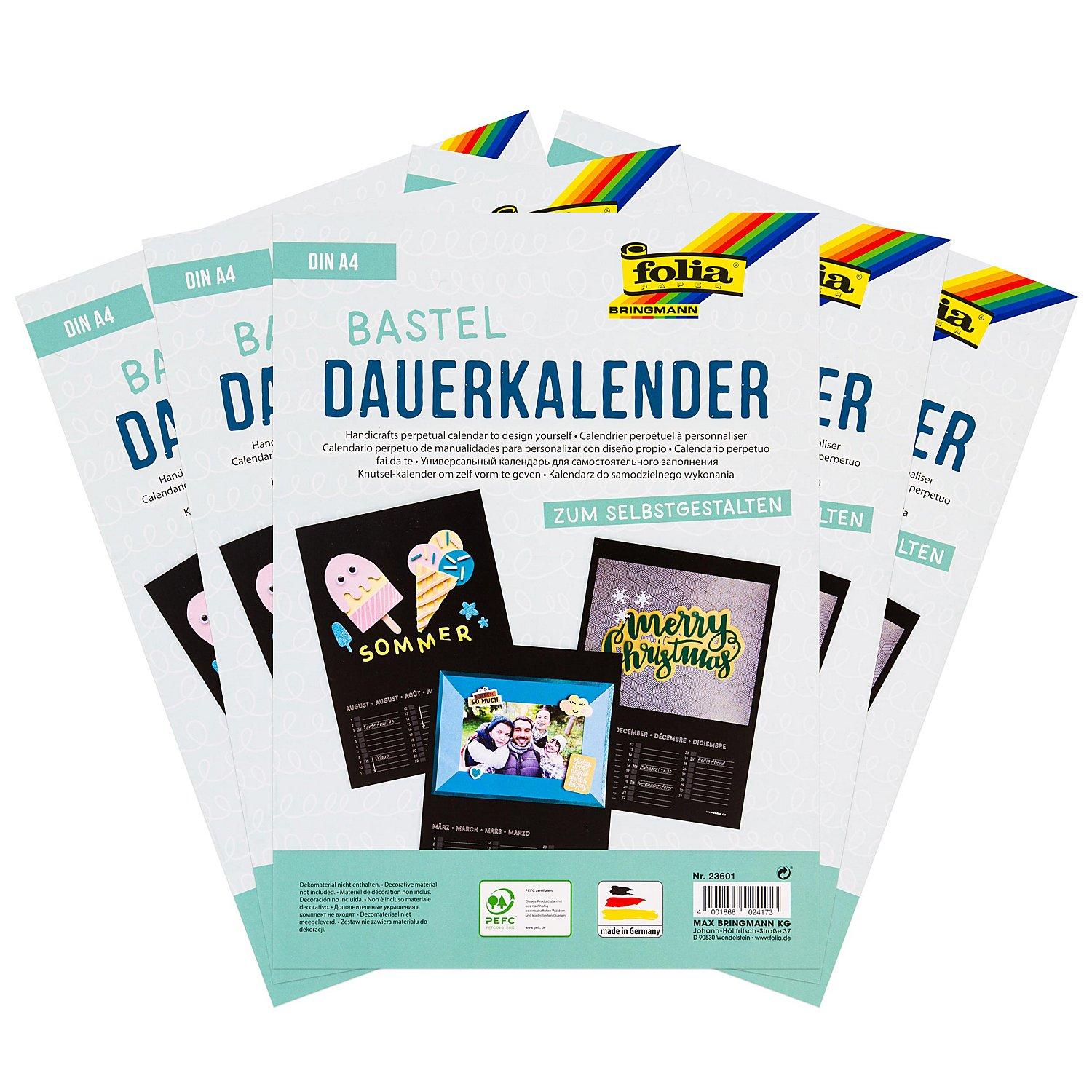 folia Dauerkalender, schwarz, 21 x 29,7 cm, 5 Stück